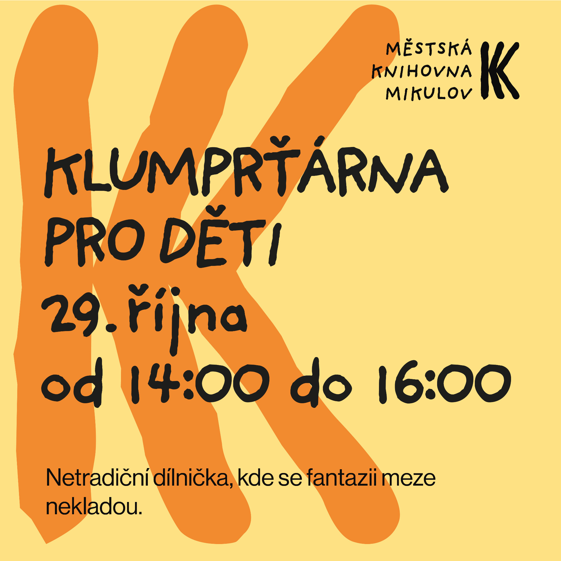 Akce probíhá od 14:00 do 16:00 a je určena všem malým i větším tvořivcům, kteří se nebojí pustit do experimentování s materiály a nápady.