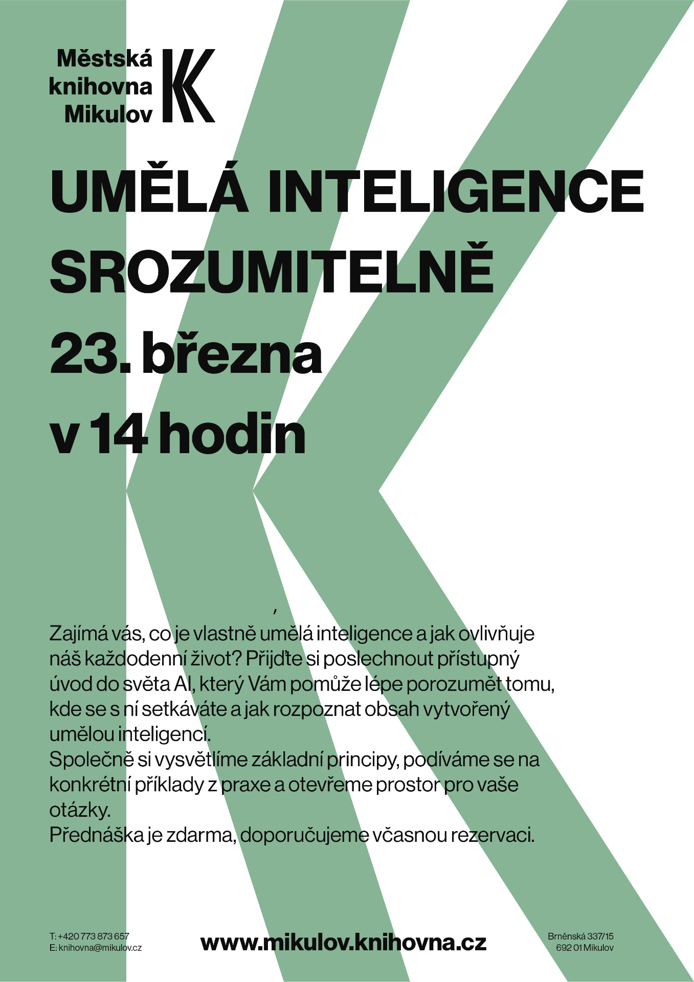 Zajímá Vás, co je vlastně umělá inteligence a jak ovlivňuje náš každodenní život? Přijďte si poslechnout přístupný úvod do světa AI, který Vám pomůže lépe porozumět tomu, kde se s ní setkáváte a jak rozpoznat obsah vytvořený umělou inteligencí.